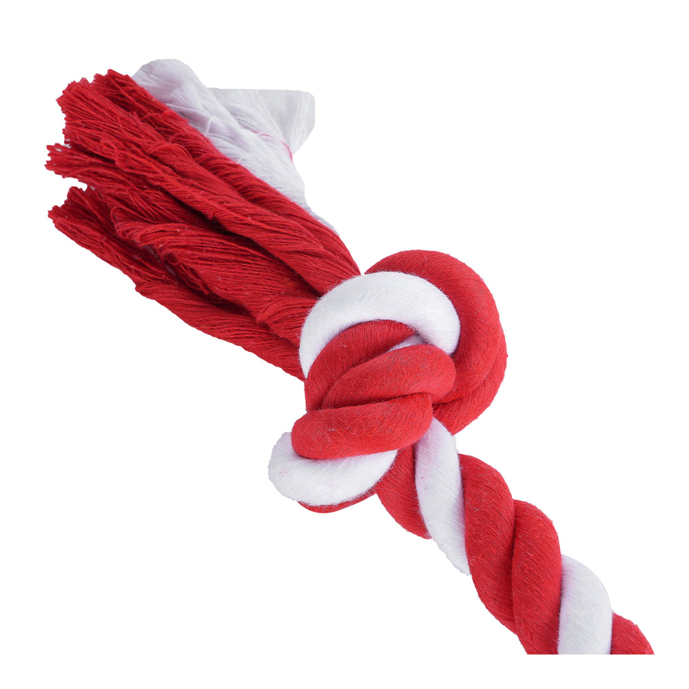 Elevate your dog's playtime with this firm and tightly knotted rope featuring a playful red and white candy cane-like design