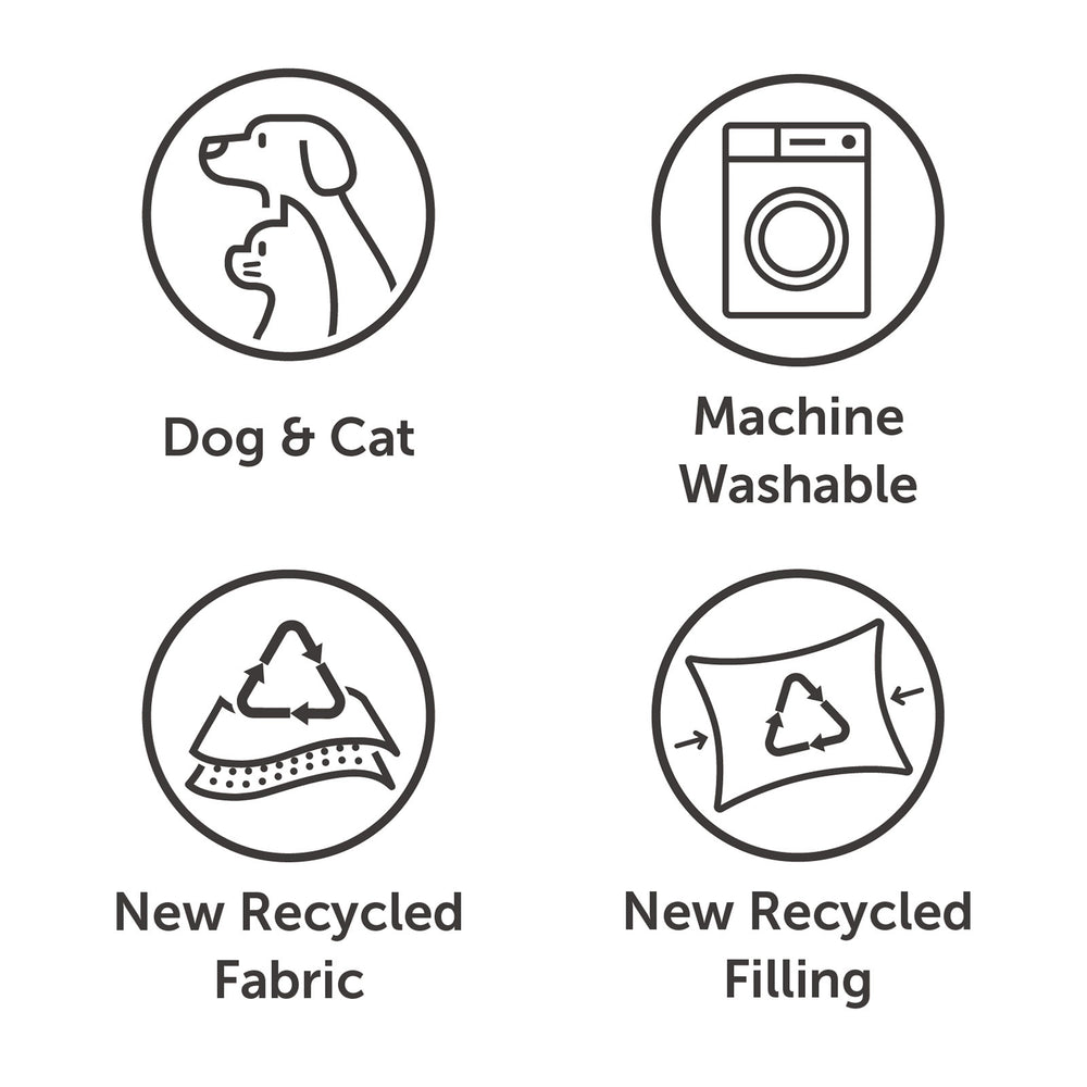 Eco-Friendly Fabric: This classic cushion bed is made from premium upholstery-style fabric crafted from new recycled fibres. The fibres are sourced from plastic bottles retrieved from ocean waste, showcasing a commitment to environmental sustainability while maintaining high-quality standards