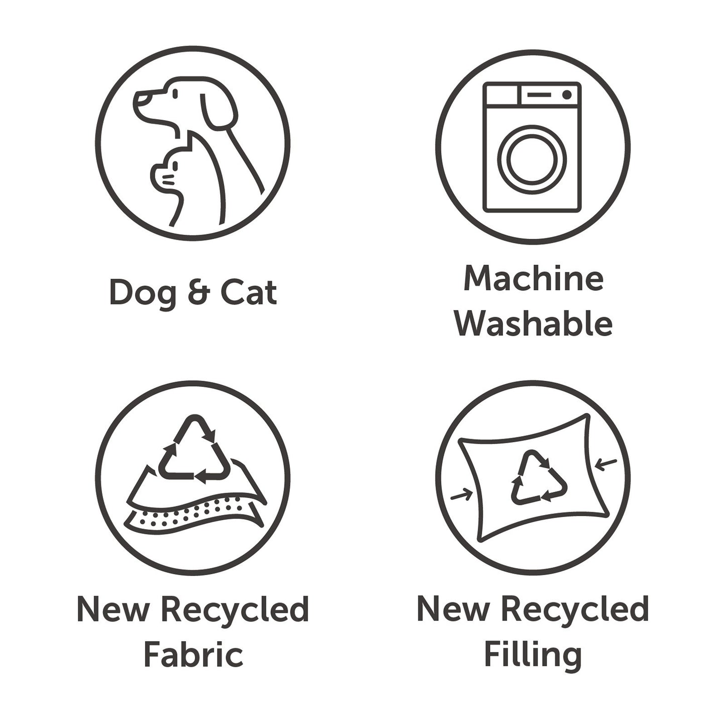 Eco-Friendly Fabric: This classic basket-style bed is made from premium upholstery-style fabric crafted from new recycled fibres. The fibres are sourced from plastic bottles retrieved from ocean waste, showcasing a commitment to environmental sustainability while maintaining high-quality standards